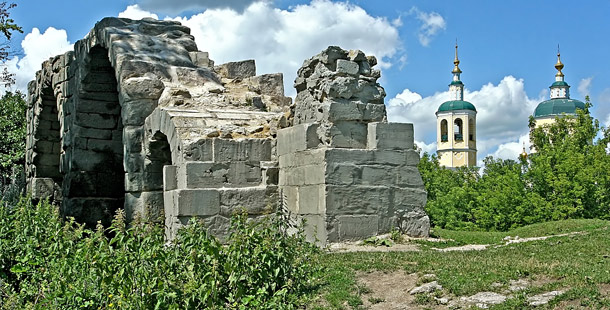 Фрагменты крепостной стены Серпуховского кремля, разобранной в 1934 году для строительства первой линии Московского метрополитена. Фото: А. Шурыгин.