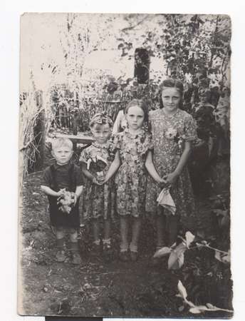 низ- Антонина , Олег(на ручках), Анна, Екатерина(старшая). 1954 год, х.Северный
