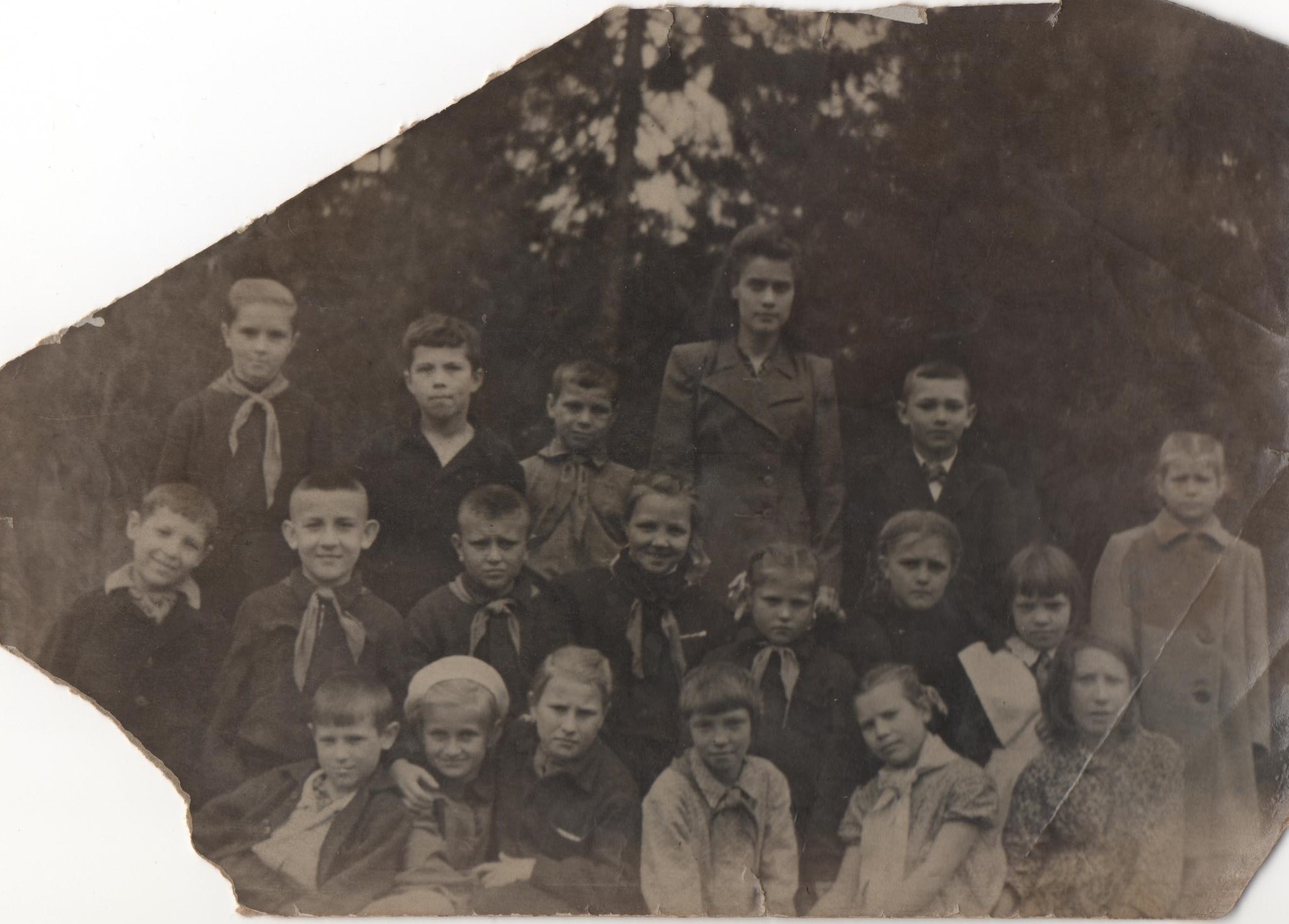 В центре этой фотографии учительница Зоя николаевна Воробьева. Через шесть лет (в 1956 г.) она станет моей первой учительницей.