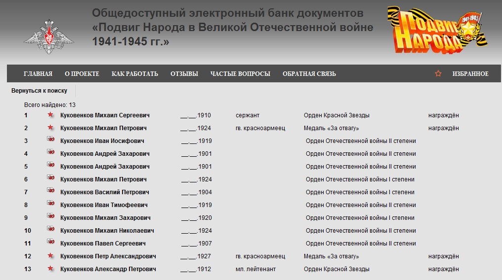 Во втором списке, в котором фамилия записана как Куковенков, значатся 13 человек. Таким образом, 92-мя высокими наградами удостоены наши родственники.
