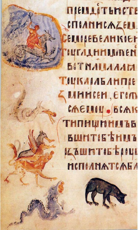 Онежская Псалтырь 1395 года. Изображение эсхатологических зверей пророка Даниила.