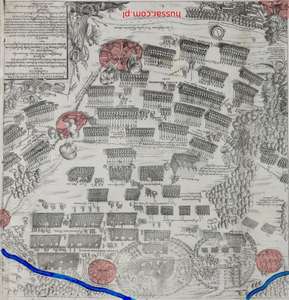 На гравюре поляки наступали в северо-восточном направлении. И это вполне соответствовало тем схемам сражения, которые рисовали современные польские историки и исследователи. Совпадали и другие детали – количество деревень на поле сражения и изгиб реки в верхней части гравюры.