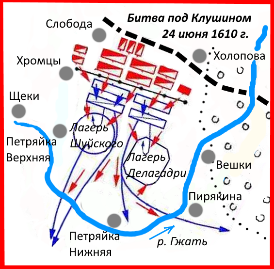 Другого пути в обход рек в этом районе нет. Поэтому движение русского войска через Клушинку (Клушино) видится вполне логичным и единственно верным.