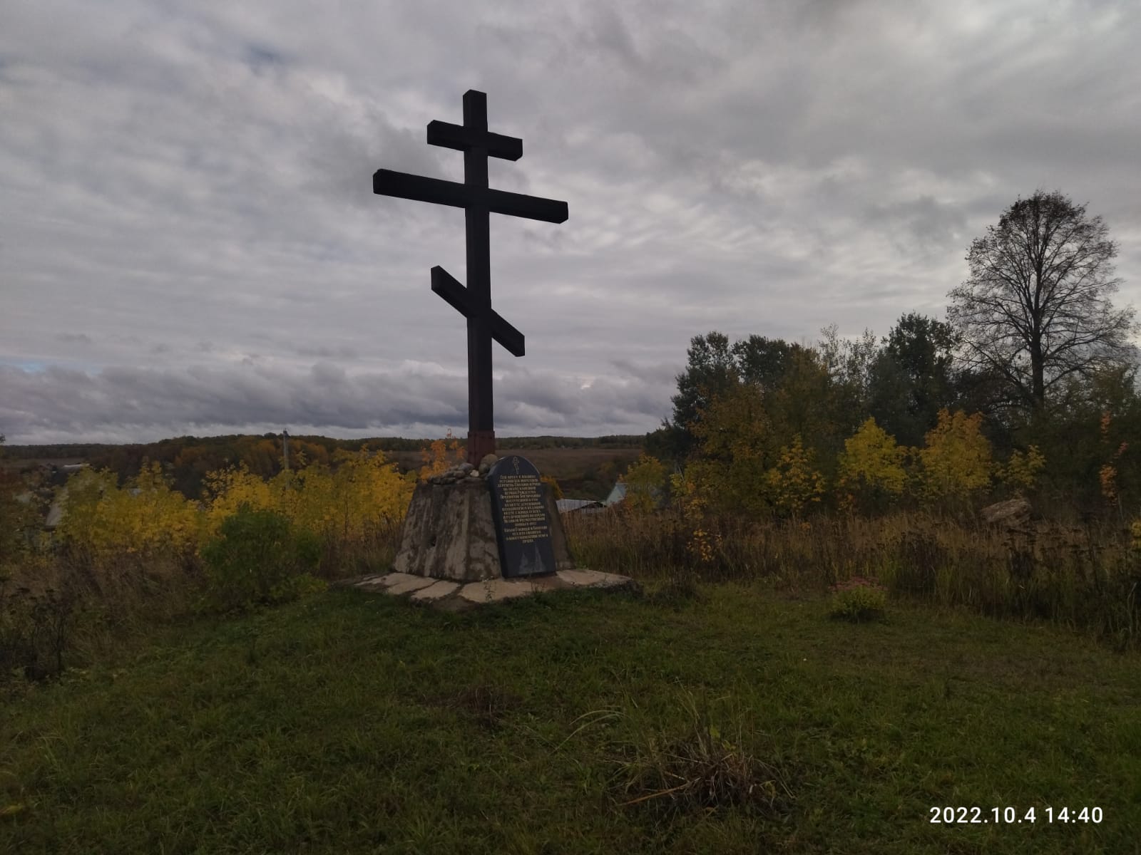 За этим крестом, ближе к ручью, который протекает внизу, находился дом Эвертов. Возможно, именно здесь и был арестован генерал в 1918 году и отправлен в Можайск.