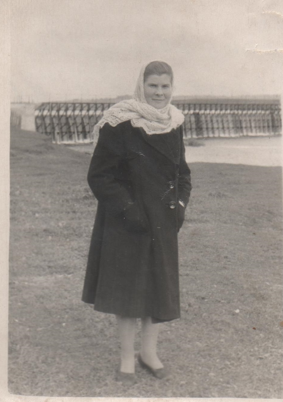 11. Анна Васильевна Шумова на фоне плотины гидростанции "Лемех Октября".