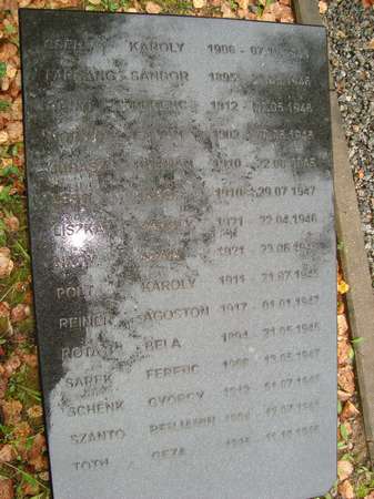 В конце 90-х посольство Венгрии обратилось по поводу увековечивания памяти своих военнопленных . Так и появились эти пятнадцать имен на гранитной плите.. Думаю, что останки венгров вряд ли кто искал, да и найти их было невозможно, поскольку многие могилы были уничтожены. Памятник поставлен на том месте, где находилось кладбище.