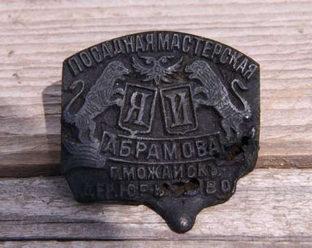 Не совсем понятна и верхняя надпись штампа ПОСАДНАЯ МАСТЕРСКАЯ. Значит ли это, что мастерская располагалась в посаде Можайска? Но понятие ПОСАД (примыкающие к городу поселения или слободы) ушло из русского языка в конце XVIII века, если не раньше. Штамп, как можно судить, относится к началу XX века. Следовательно, никаких посадов к этому времени в Можайске уже не было.