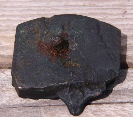 . Штамп интересен тем, что рисунок, помещенный на нем, стилизован под западноевропейские аристократические гербы и содержит изображение геральдических львов со щитами, в которые вписаны буквы Я и И (видимо, начальные буквы имени и отчества). У меня нет никаких сведений о том, кому мог принадлежать этот штамп, и какую продукцию им маркировали.Могу лишь предположить, что это было клеймо для клеймения кирпича или же для клеймения бочарных изделий. Последнее предположение, думаю, более верно. Клеймо оплавлено в нескольких местах, что свидетельствует о том, что его неоднократно нагревали до высоких температур . Такое может быть только с изделением, которое было предназначено для выжигания товарного знака. Но сведений о бочарном производстве в пределах Можайского уезда у меня нет.