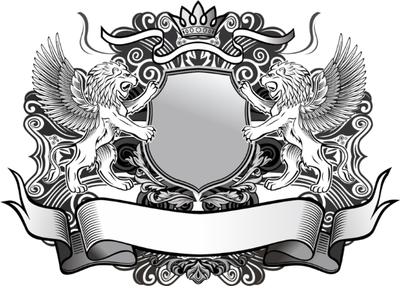 Согласно правил геральдики, одним из элементов герба является лента. Ваше предположение о рыбьем хвосте и отсутствующей голове, является заблуждением. Под вторым животным отсутствует часть ленты. Примеров в инете найдёте много по запросу, приведу одно изображение.