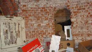 Первоначально это было небольшое окно в алтарной части часовни. Сейчас здесь зачем-то пробили дверь.