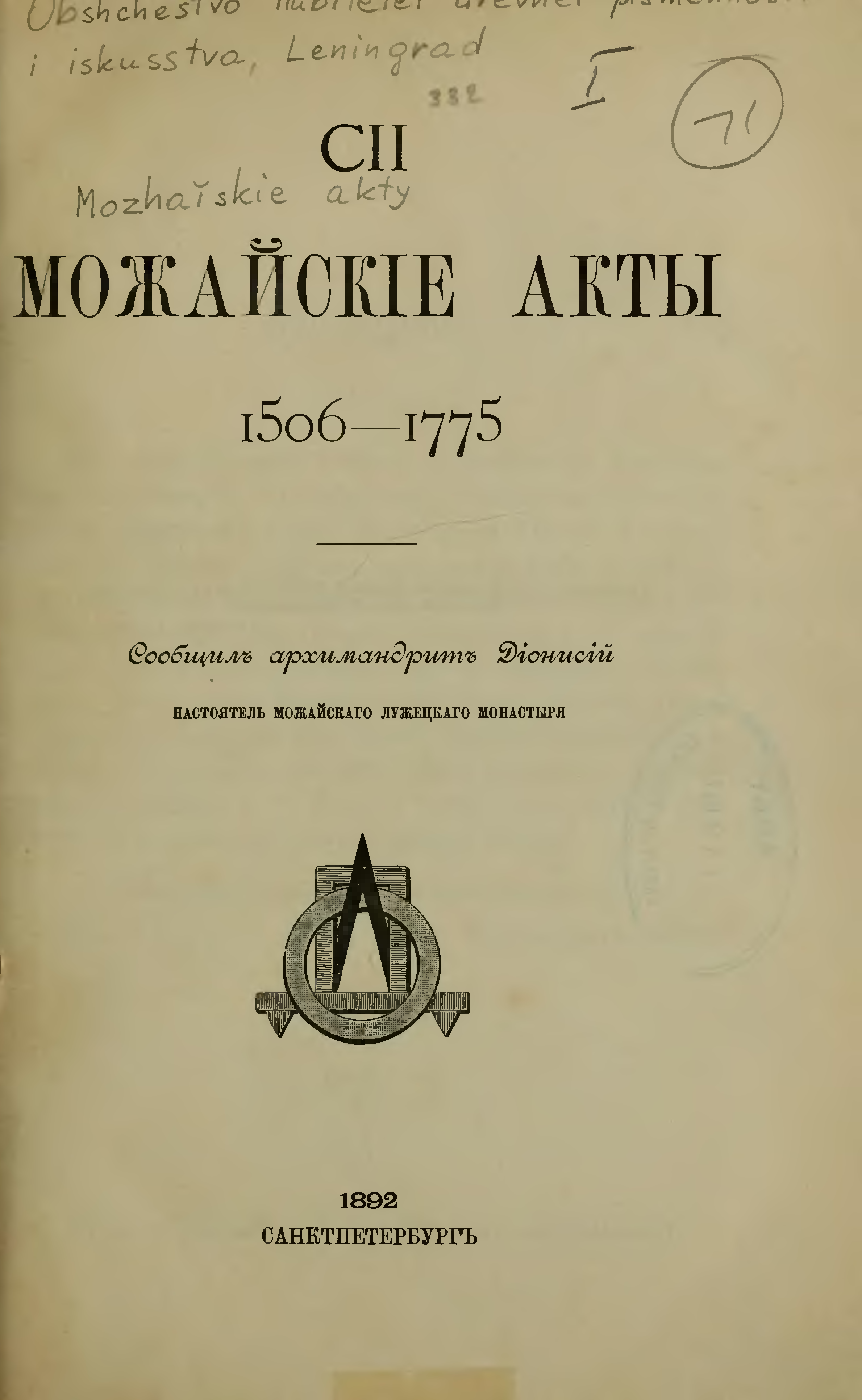 Скачать книгу можно тут: http://library.kozlov.ws/?book=mozhajskie-akty-1506-1775